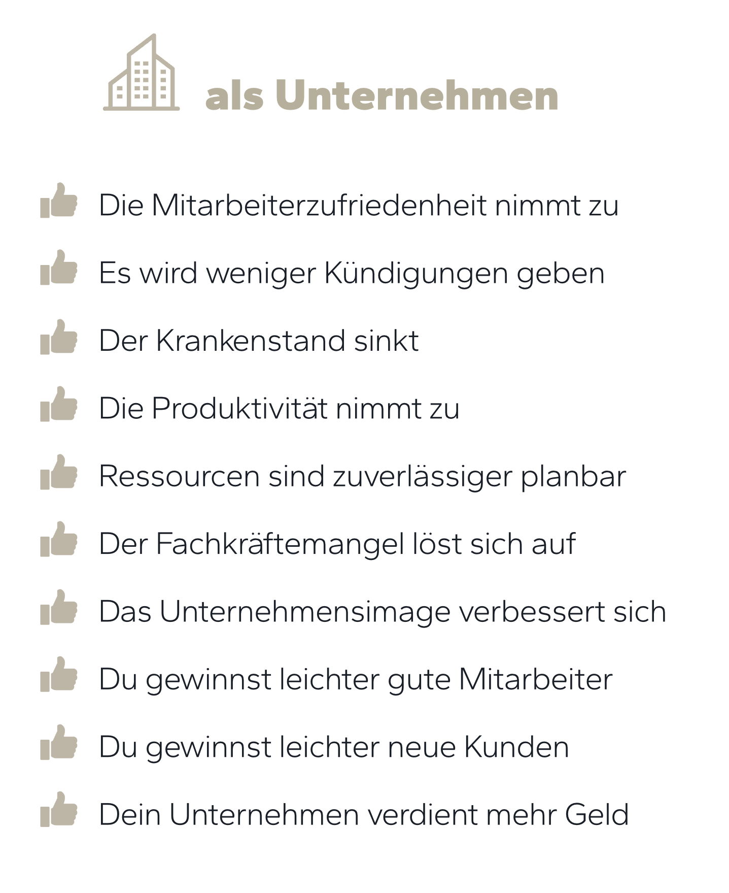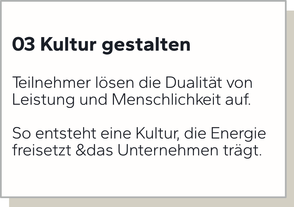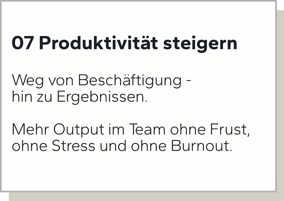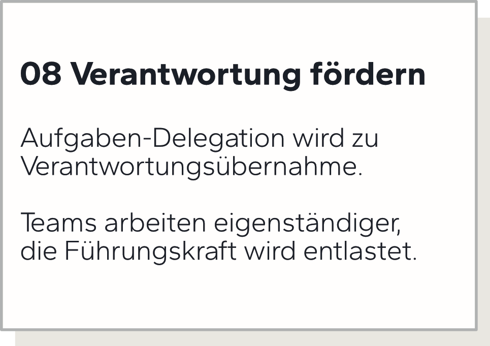 Damit steigerst Du Engagement, Verantwortung, Performance und Zugehörigkeit in Deinem Team. Stress und Überlastung verringern sich deutlich, Fluktuation und Krankenstand gehen zurück.