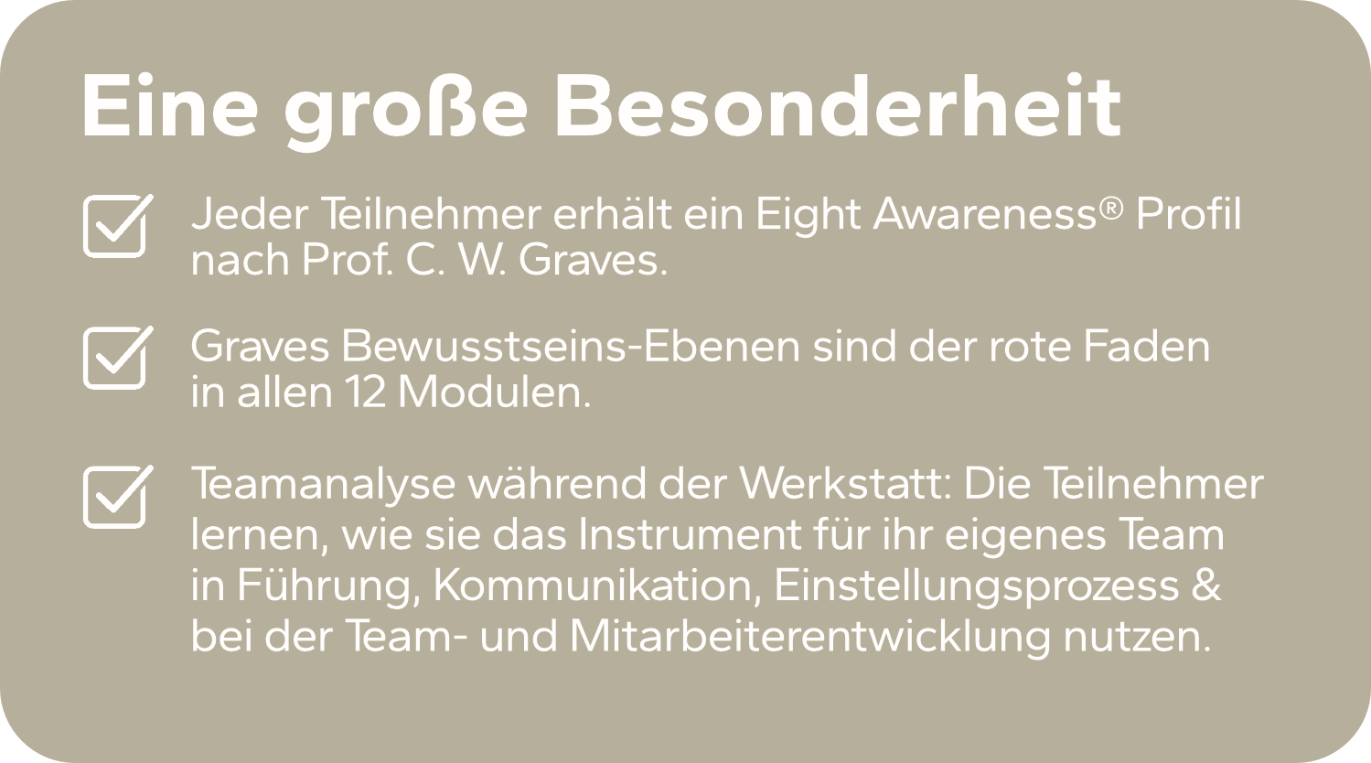Ich habe mehr als eine Viertelmillion Euro in meine Ausbildung investiert und jetzt für Dich und Dein Team das Beste aus Neuro-Linguistik, Gehirnwissenschaften, Psychologie und Kommunikationstherorien in ein einzigartige und besonder praxisbezogene Ausbildung für Deine Führungskräfte zusammengeführt.