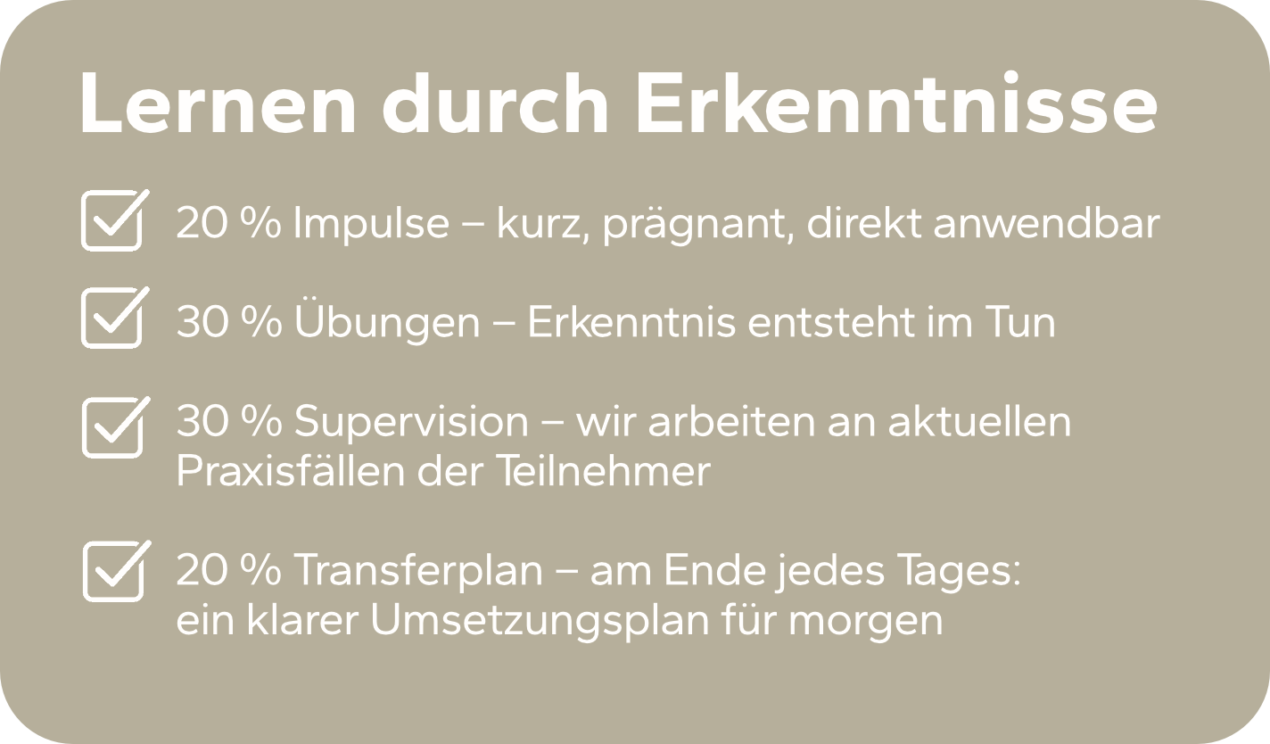 Praxisnah begleitet. Nachhaltig wirksam. Sofort umsetzbar.